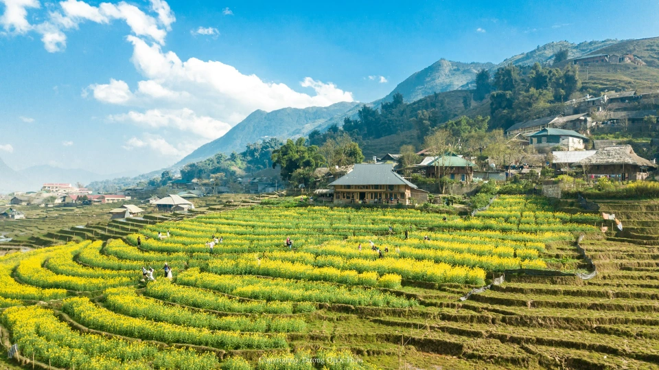 Mustard flowers bloom throughout Sâu Chua Village in spring.