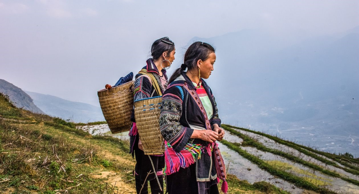Lý Thị Cơ (front) is a part-time tour guide from the Black H’Mông ethnic group. – Photo: Vietnam Travel